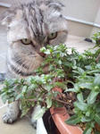 外に出すと、いつも植木や庭の草を